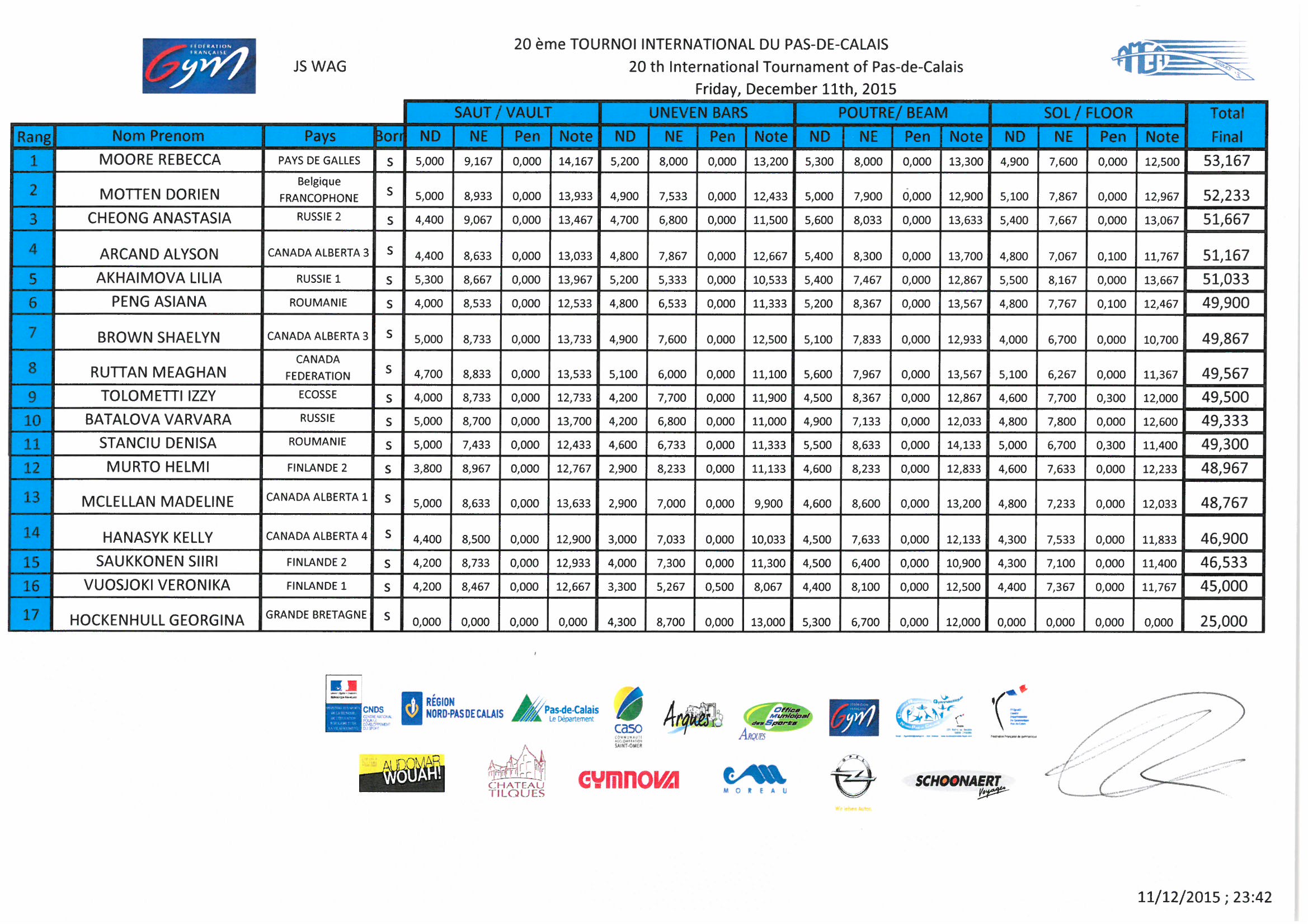 She has one team gold, three bronzes and one personal silver on floor and bronze on beam in Nordic Championships. In 2013 she was by far the youngest member of the Finnish Team in the Northern European Championships in Lisburn, and in 2017 she won gold on uneven bars when Northern Europeans were in Tórshavn.